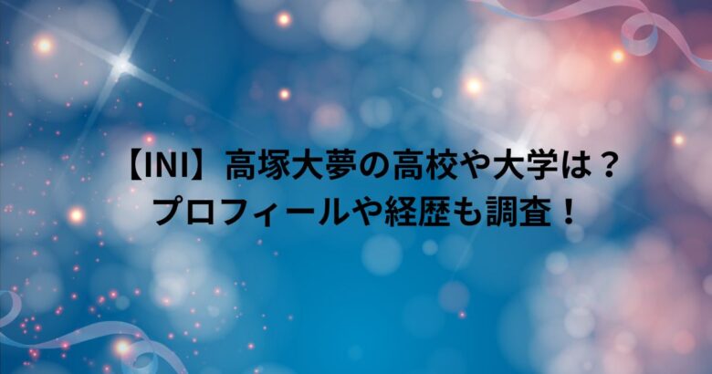 この記事では「【INI】髙塚大夢の高校や大学は?プロフィールや経歴も調査!」と題して、INI 髙塚大夢さんの学歴や学生時代のエピソード、さらにはこれまでの経歴まで詳しくご紹介します。